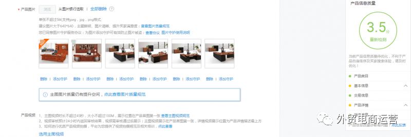 同時我們有做了個測試,產品表單中,其它信息基本一致的情況下(同款產品)(且各版塊都已填寫完畢),產品主圖(像素一樣,都是產品全景圖,無細節圖),